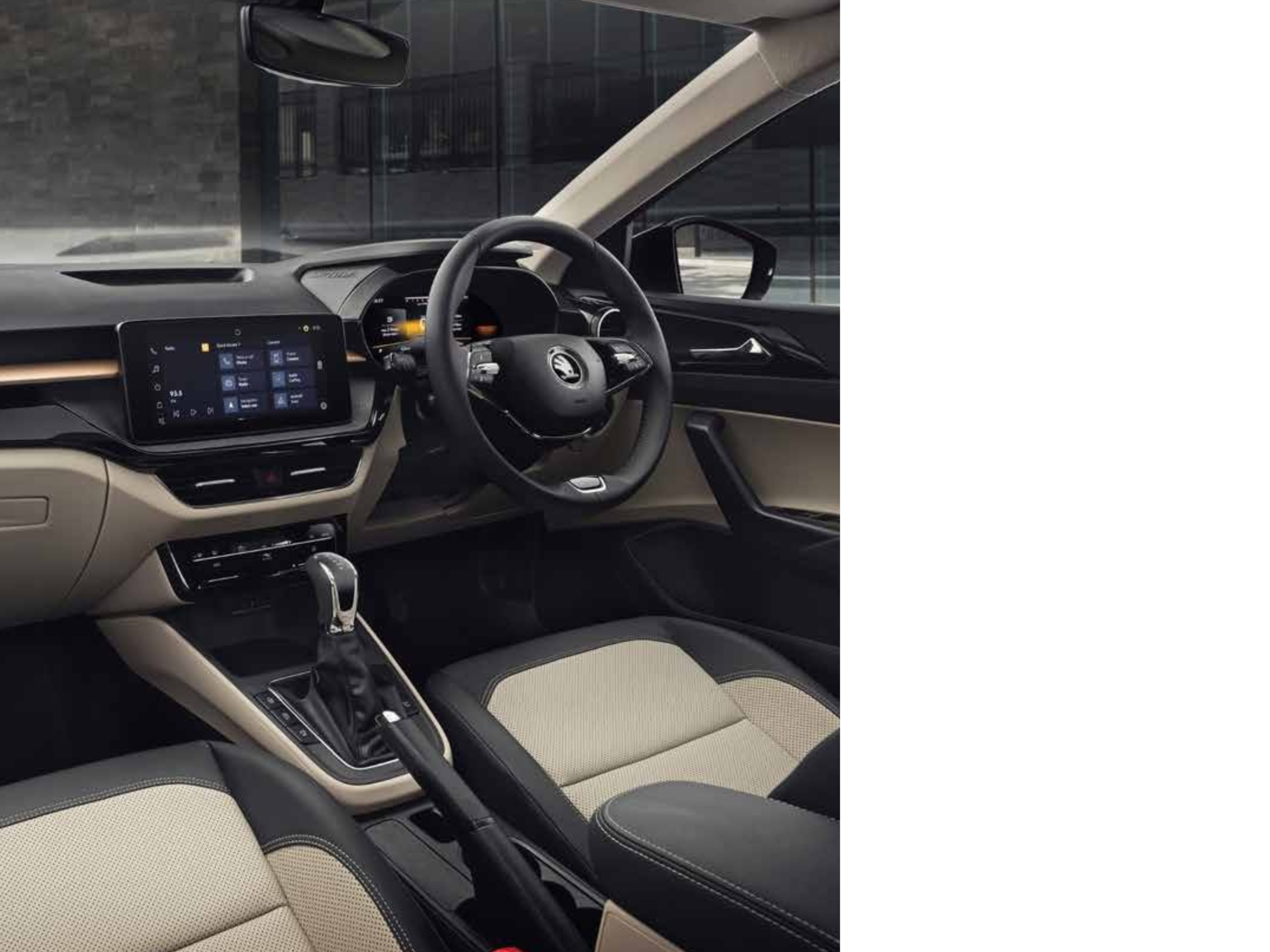 The ŠKODA SLAVIA offers a refined cabin with smart technology, generous space, and ergonomic comfort for both driver and passengers.
